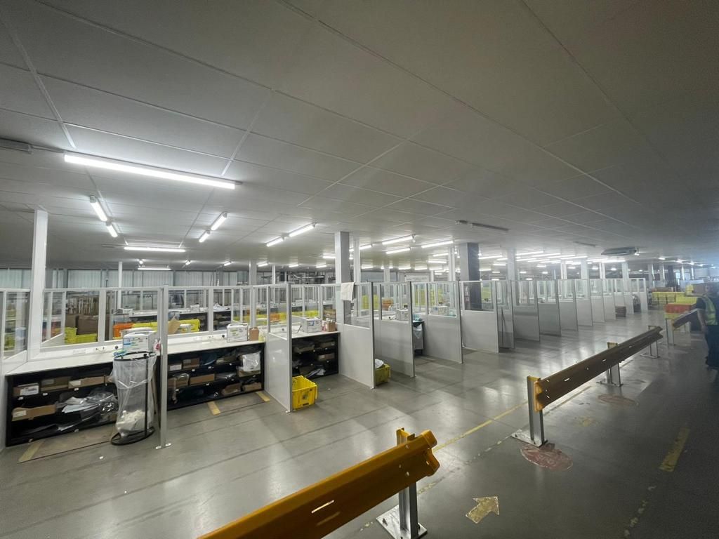 The laminated glass screen enables communication between office colleagues and can easily be cleaned.
