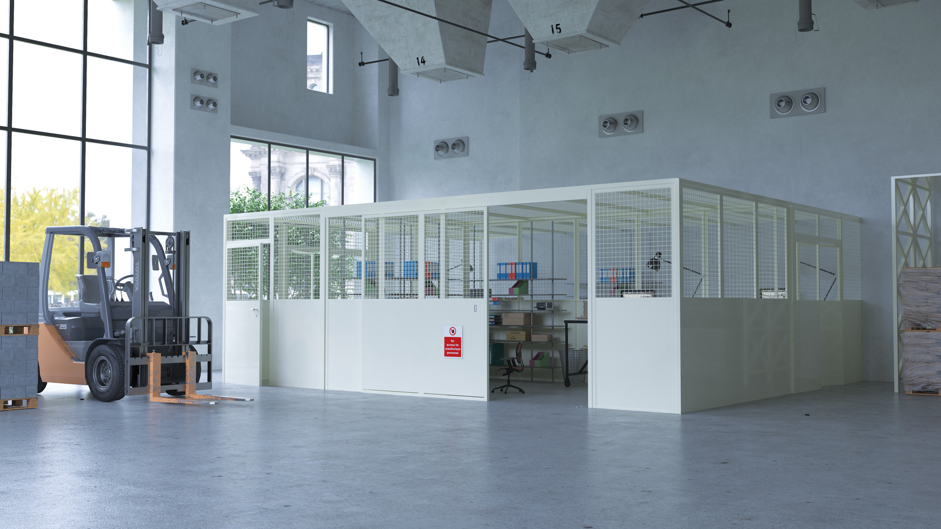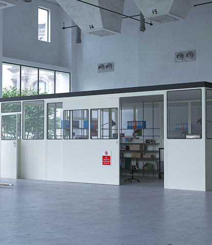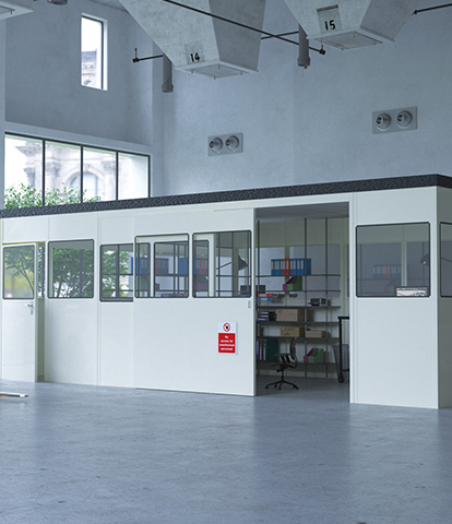 Panels are constructed from 43 x 43 x 1.2 mm (18g) cold-rolled angles and 32 x 32 x 0.7 mm (22g) cold-rolled T bars. Panels are available in solid, mesh or solid/glazed/solid elevations.