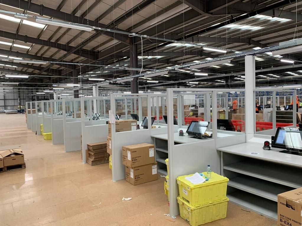 The laminated glass screen enables communication between office colleagues and can easily be cleaned.